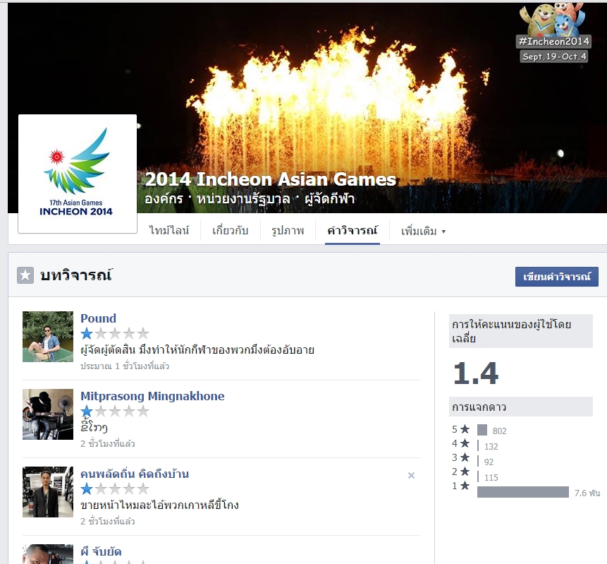 เพจ 2014 Incheon Asian Games โดนถล่มแล้ว
