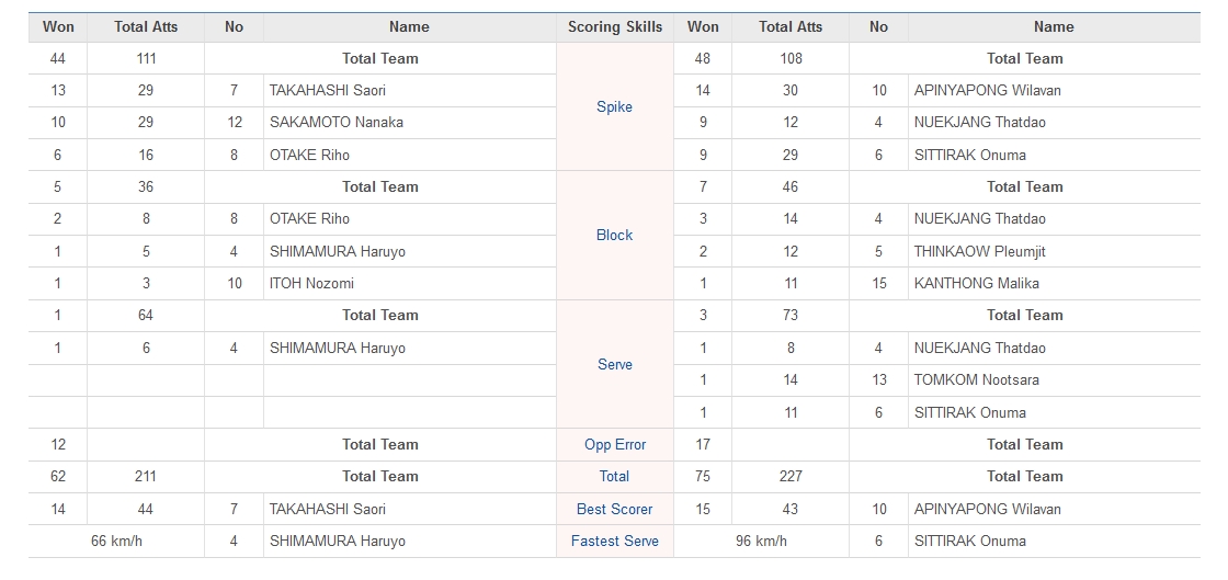 สถิติ JPN VS THA | VNL2022