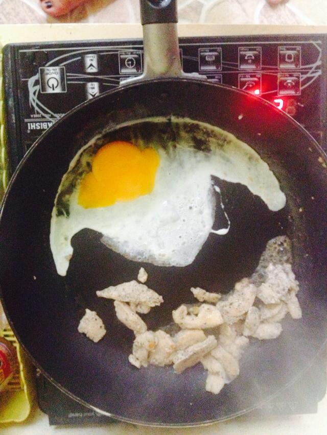 จากนั้นตอกไข่ไก่เข้าไปค๊าาา