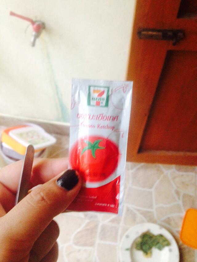 และเครื่องปรุงที่สำคัญคือ ซอสมะเขือเซเว่นสักสองซองค่ะ จขกท มีความเชื่อว่า มันอร่อยกว่าซอสที่ขายทั่วไป(แค่ความเชื่อน่ะ)
