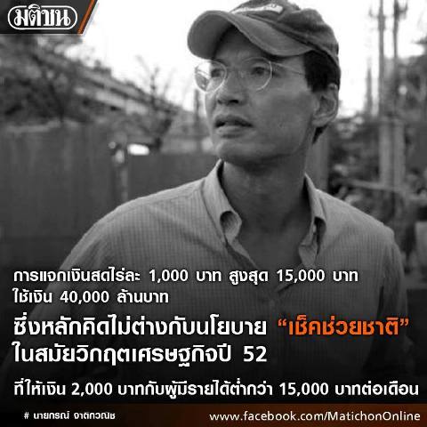 กรณ์บอก แจกเงินชาวนาไม่ต่างจากเช็คช่วยชาติ ฮ่าๆๆๆเอิ๊กกก