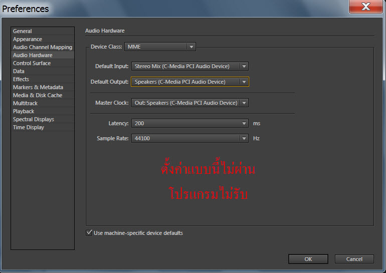 ในโปรแกรม Adobe Audition ผมตั้งค่าแบบนี้