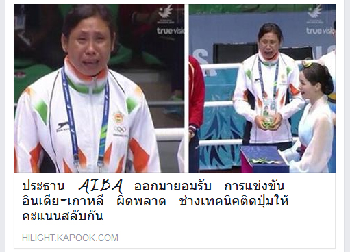 เห็นว่า ไอบา ออกมายอมรับว่าเกิดความผิดพลาดในการให้คะแนน ระหว่างคู่ มวยหญิง อินเดีย-เกาหลี
