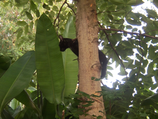 กำลังนั่งเล่นอยู่ครับอยู่ๆแมวก็วิ่งพรวดพราดมาแล้วโดดขึ้นต้นไม้หมาตามมาทันก็นั่งเฝ้าทีแรกก็ไม่ว่าอะไรมันเป็นธรรมชาติของมันแต่แล้วจู่ๆแมวก็พยายามไต่ลงมาก็เดินไปดู มดเต็มเลยครับ