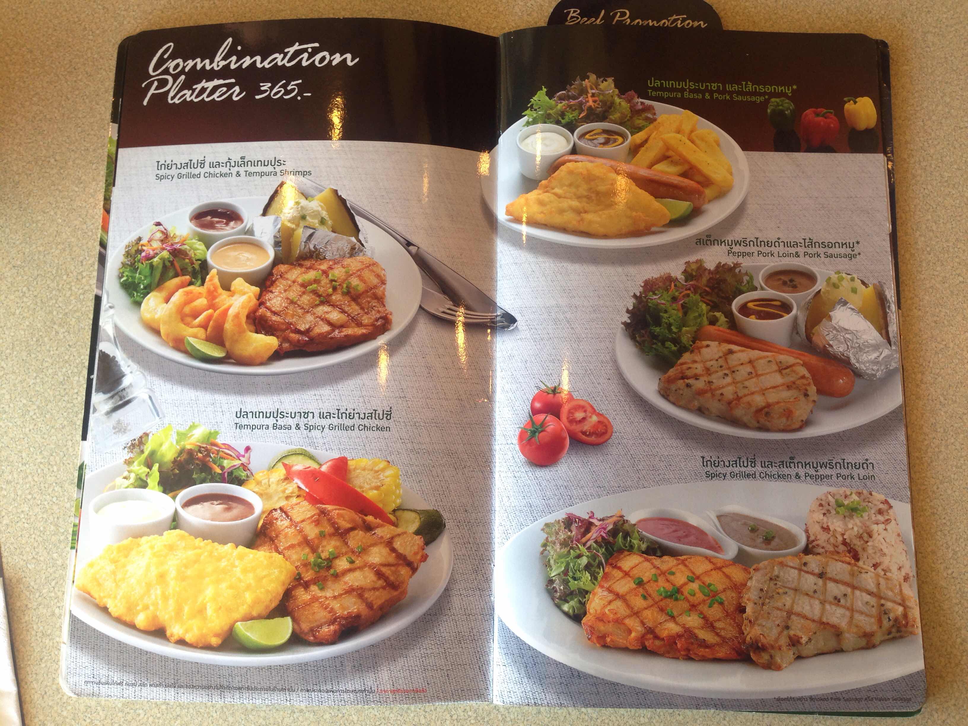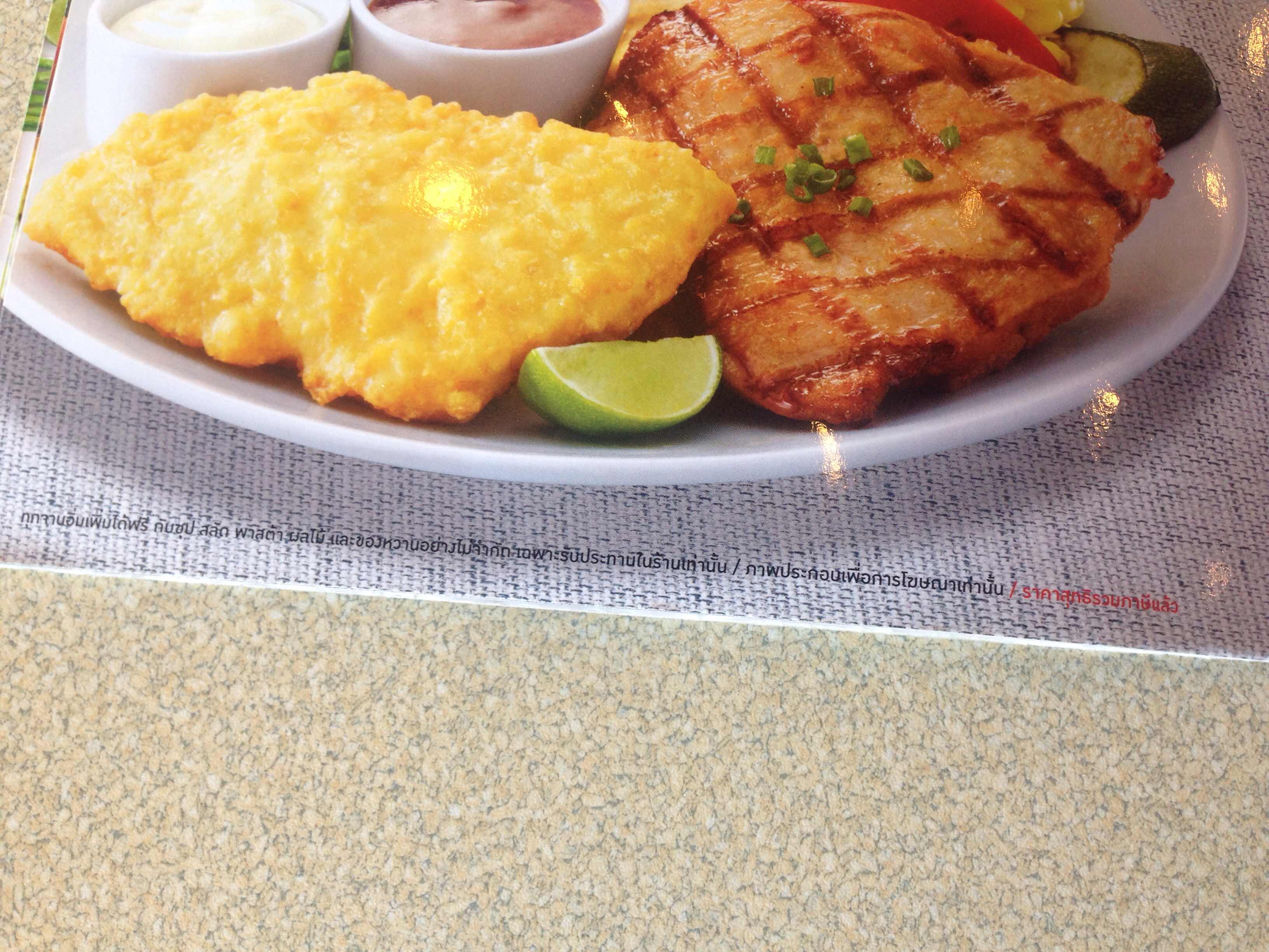 เมื่อดูราคาอาหาร ที่มีในเมนูปรกติจะพบว่า ไก่+ปลา (อันที่มีในโปรโมชั่น) ระบุราคา 365 บาทต่อจาน
