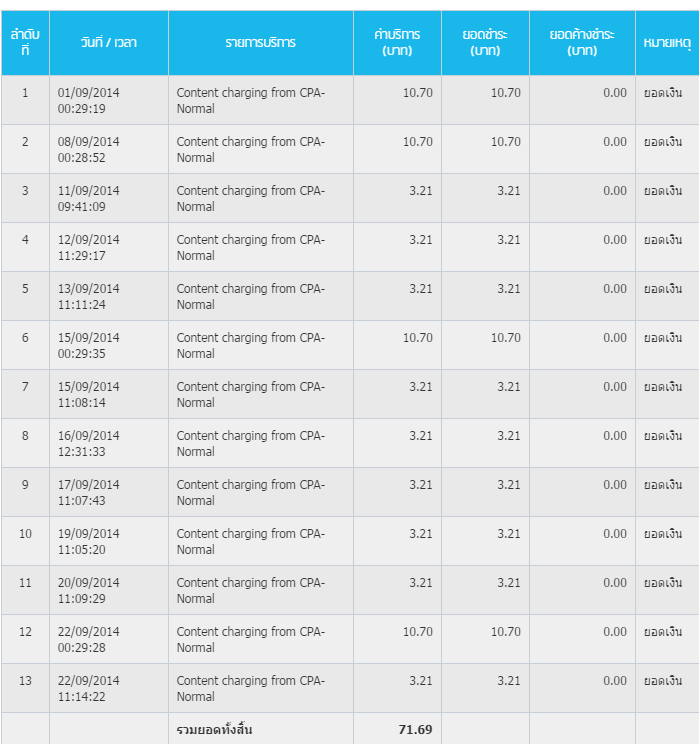 แต่ในระยะหลังๆผมได้สังเกตว่าเงินที่เติมไว้หมดเร็วกว่าปรกติ จึงได้ทำการเช็คดูก็พบว่า SIM นี่ได้มีการสมัคร Content เสริมไว้ดังภาพ
