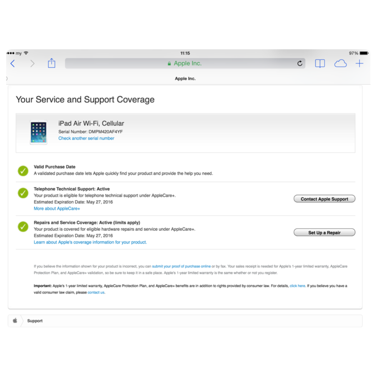 รบกวนช่วยเช็คประกันให้ทีค่ะ ipad air (มีรูป)