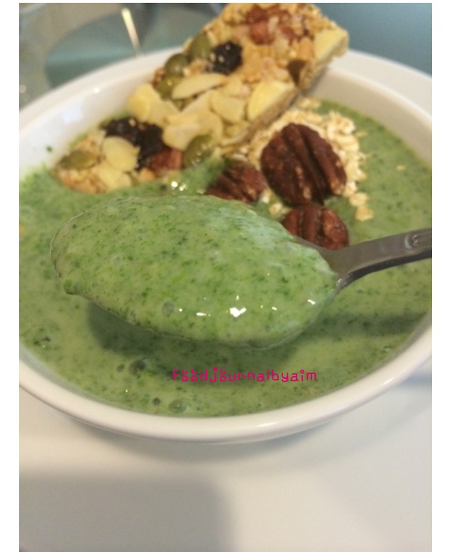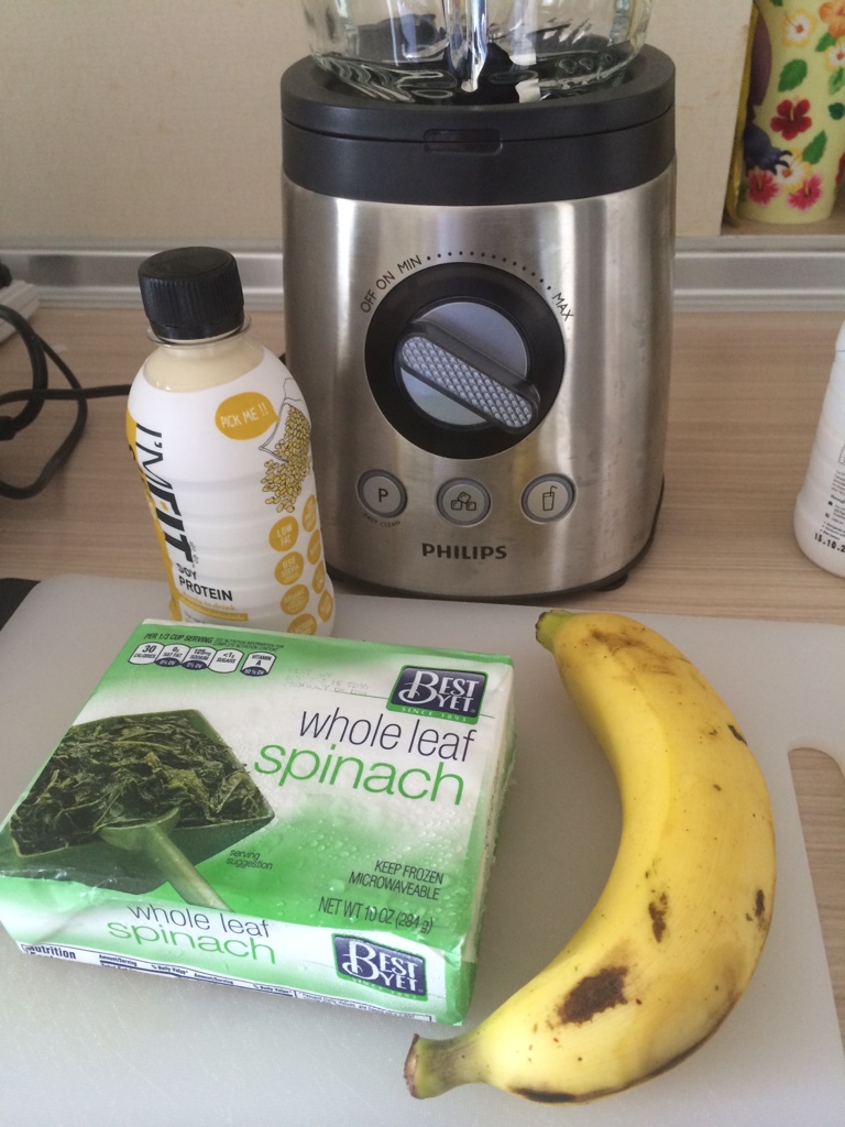 เราใช้กล้วยหอมสุกครึ่งลูกแช่แข็ง ผักโขมแช่เเข็งนิดนึง นมถั่วเหลืองแช่เย็นจัดปั่นเลยค่ะ ไม่เหม็นเขียว สดชื่นดีค่ะ
