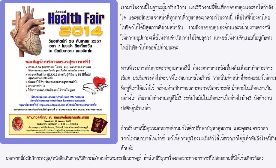 [CR] รีวิว*** งานวันตรวจสุขภาพ ฟรี! ที่วัดธรรมาราม ชิคาโก