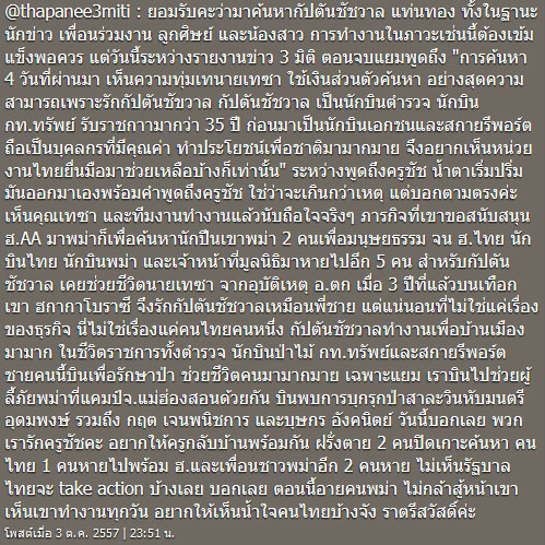อินสตาแกรมส่วนตัว เกี่ยวกับความคืบหน้าเรื่องการค้นหากัปตันชัชวาล แท่นทอง นักบินของไทยที่ขึ้น