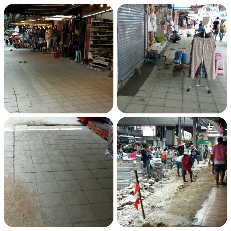 วันนี้มีโอกาสไปเดินแถวหน้าราม มาครับ แต่แปลกใจที่ว่ามีเจ้าหน้าที่และคนงานมาทำการรื้อสิ่งก่อสร้างที่ลุกล้ำทางเท้า แถมเดินไปอีกหน่อยรู้สึกทะแม้งๆ ว่าทำไมทางเท้ามันกว้างขึ้น ตอนแรกก็ไม่ทราบว่าเค้ามาทำอะไรลองด้อมๆ เดินไปถามป้าเจ้าของร้านแถวนั้นที่มองอยู่และทำหน้าอาฆาตมาดร้ายคนงานที่กำลังเจาะปูนของร้านป้าที่มันรุกล้ำมาบนทางเท้า ก็ถึงบางอ้อว่าเค้าจัดระเบียบทางเท้าใหม่ (โอ้วเหมือนฝันจะเป็นจริง) ขณะขณะเดียวกันป้าๆ อีกร้านนึงก็คุยกึ่งประชดว่า "ไหนๆ ก็วัดที่แล้ว ถ้ามีใครมาล้ำที่ฉัน ฉันจะเก็บตังให้หมด" เดินมาเรื่อยก็แอบฟัง มาอีกร้านหนึ่งคุยกับลูกจ้างว่า "ทำไมร้านเจ๊โดนเยอะ ร้านอื่นโดนนิดเดียว" เท่านั้นยังไม่พอเราเดินไปอีกนิด ก็เจอ ลุงคนนึงกำลัง ไฝ้วกับเจ้าหน้าที่ที่กำลังวัดเขตกันอย่างสนุกเลยทั้งๆที่ตรงนั้นมันทางเท้า!!! แต่ครั้งนี้เจ้าหน้าที่เด็ดขาดมากวัดแล้ว ตรวจแล้ว จัดการให้คนงานตีเส้นแล้วเจาะเลยทันที เลยอยากจะขอบคุณ จนท. ทุกท่านเลยที่ทำให้หน้ารามมีวันนี้ได้ แต่ไม่ใช่มีทางเท้ากว้างขึ้นแล้วจะโดนแผงลอยยึดอีกทีนะครับ งั้นเหมือนไม่แก้ปัญหาเลย