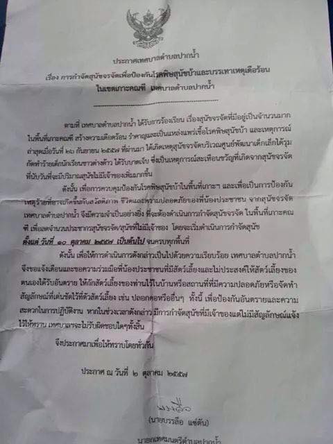 ไปเจอภาพถ่ายเอกสารฉบับนี้มาครับ (ไม่ทราบว่ากระทู้ซ้ำหรือเปล่า) รู้สึกตกใจกับคำว่า กำจัด ของทางเทศบาลปากน้ำมาก กำจัดในที่นี้คือ ฆ่า หรือเปล่าครับ? ถ้าเป็นจริงมันโหดร้ายสำหรับพวกเขาเกินไปไหม ? ภาพจาก เพ