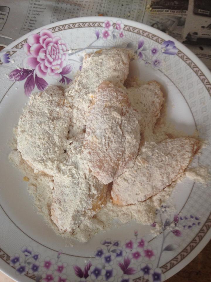 เสร็จแล้วเราก็เอาไก่ชุบไข่ ชุบแป้ง แต่เราไม่ได้เอาไก่แช่น้ำเกลือนะคะ เราขี้เกียจอ่ะ5555