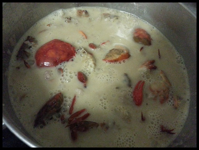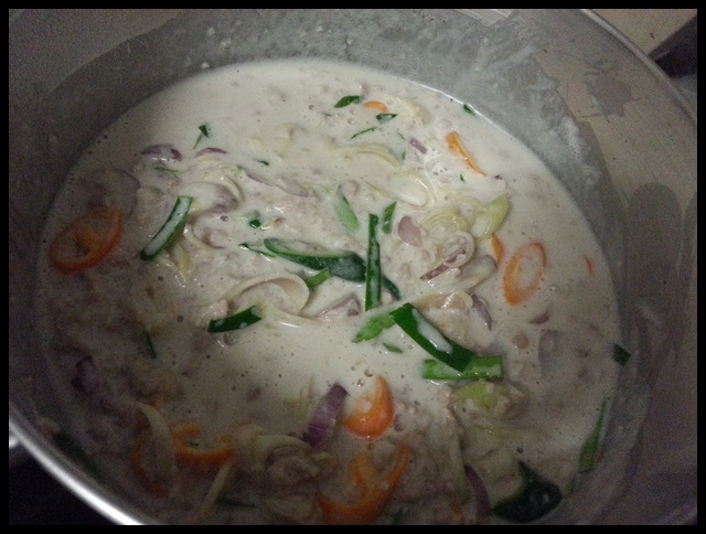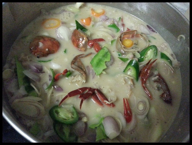 เราตั้งกะทิ แบ่งครึ่งกล่อง ลองทำหลนเนื้อปูก่อน