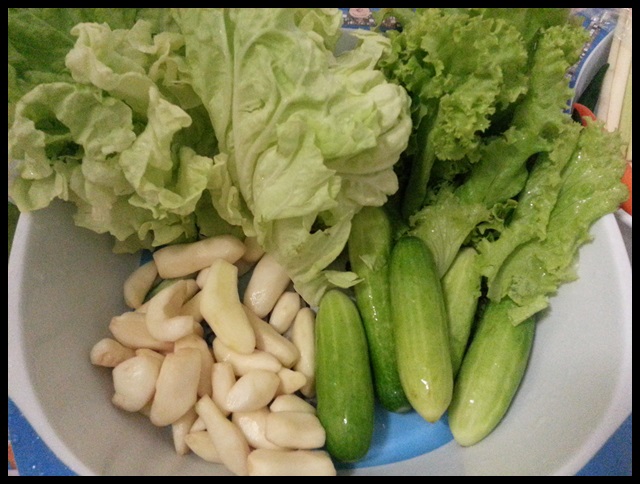 ขมิ้นขาว - ผักกาดขาว - แตงกวา และผักที่เหลือในตู้เย็น คือผักกาดหอม