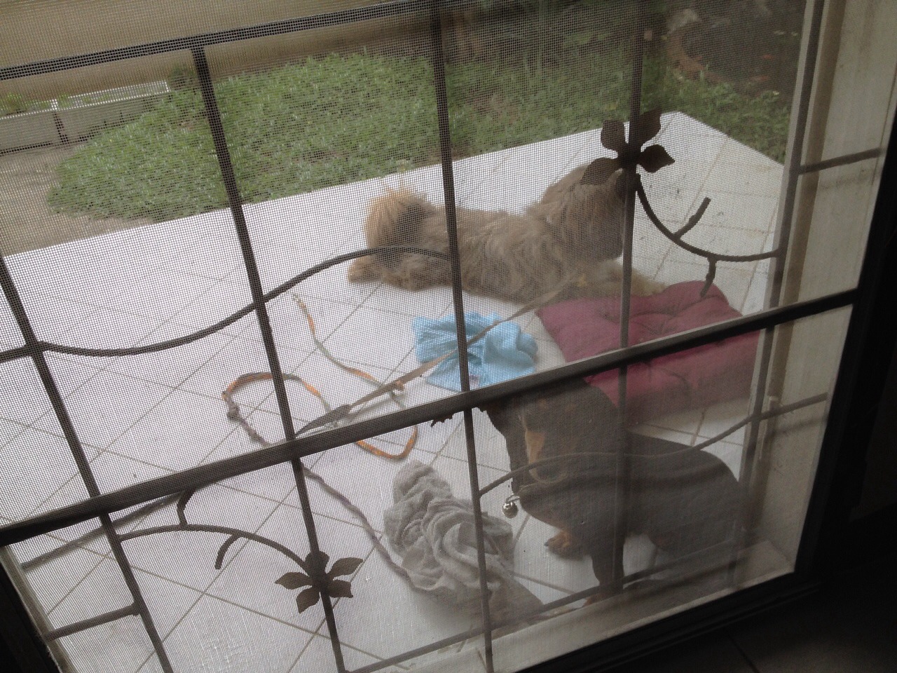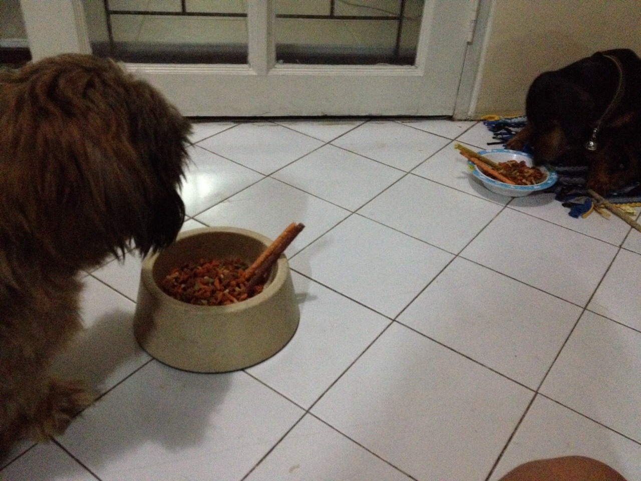 แต่พอปล่อยไว้สองตัว ก็ไม่เป็นไร เหล่ๆกันบ้างแต่ก็ไม่ถึงขั่นขู่หรือกัดกัน ตอนกลางคืนก็ให้นอนใกล้กัน ไม่ทราบว่า เพื่อนๆพี่ๆ คนไหน