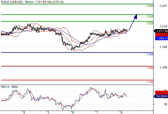 Our preference: Long positions above 1180 with targets @ 1225 & 1235 in extension.