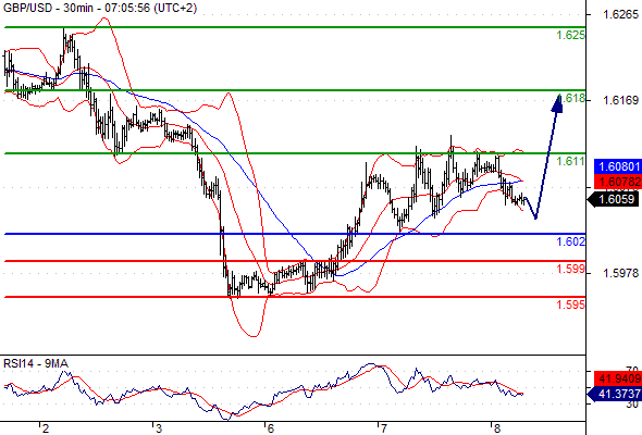 Our preference: Long positions above 1.602 with targets @ 1.611 & 1.618 in extension.