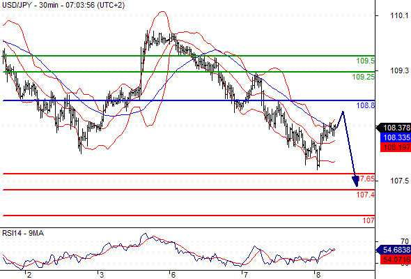 Our preference: Short positions below 108.8 with targets @ 107.65 & 107.4 in extension.