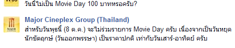 วันนี้ 8 ตุลาคม 2557 Major Cineplex ไม่มีโปร Movie Day หรอครับ?