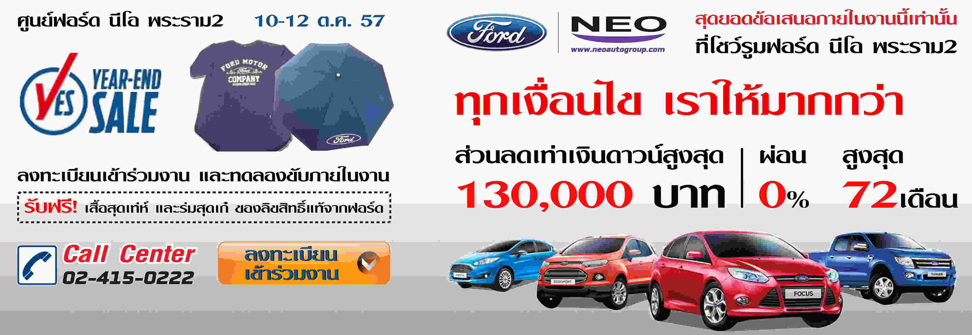 ลงทะเบียนเข้าร่วมงานได้ที่ตาม Link เลยค่ะ http://www.neoautogroup.com/fordneo_event.html