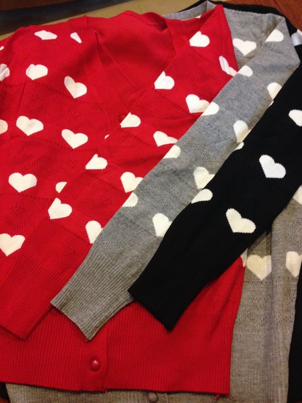 1. เสื้อคลุมพื้นสีลายหัวใจสีขาว มีสีแดง ดำ เทาค่ะ ราคา 300 บาท