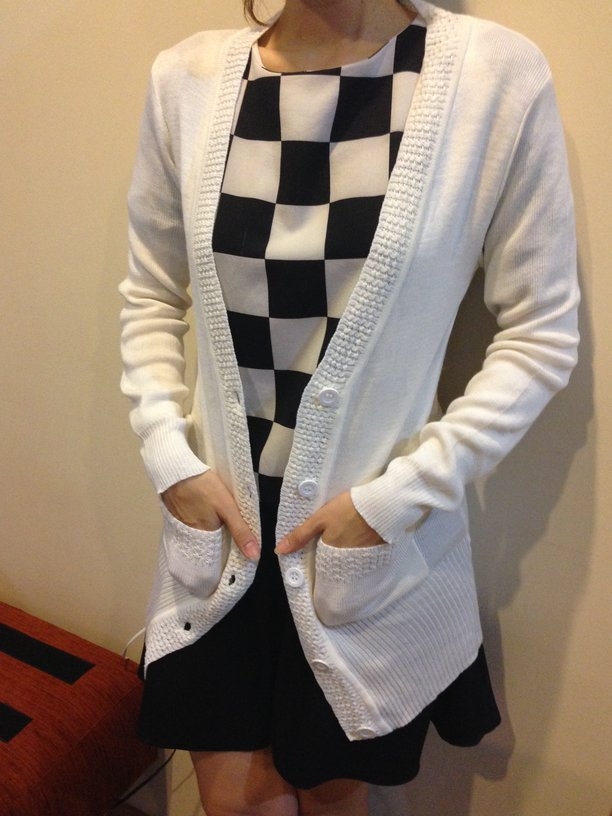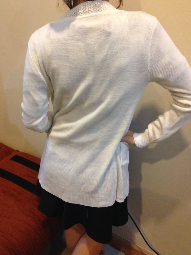 3. เสื้อคลุมตัวยาว สีขาว มีลายตรงขอบ 300 บาท