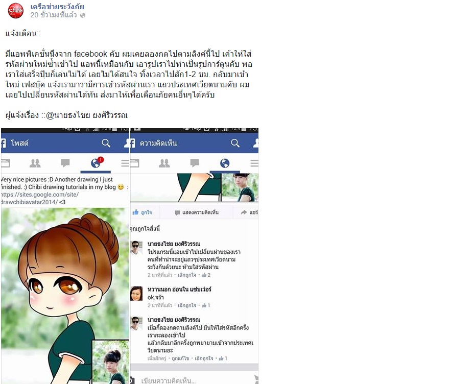 สวัสดีค่ะ พอดีอยากทราบหน่อยค่ะ ว่าตอนนี้ใน Facebook มีรูปแบบนี้ระบาดเยอะมาก แล้วพอดีด้วยความที่ไม่รู้ว่ามันคืออะไร ก็เลยกดเข้าไปแล้ว ปรากฎว่ามันมีการส่งรูปไปให้เพื่อนๆ ใน Facebook ของเราเกือบทุกคนเรย เรยอยากทราบวิธีแก้ไข้ปัญหาตัวนี้หน่อยค่ะ ว่าจะต้องทำยังไง แก้ไขยังไง รบกวนหน่อยนะค่ะ แล้วที่มันเป็นแบบนี้ เค้าเรียกว่า ไวรัส หรือเปล่าค่ะ