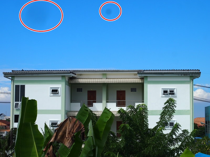 ทดลองถ่ายแล้วมีจุดแบบในวงกลมที่วงไว้ (สังเกตเห็นตั้งแต่ตอนกดชัตเตอร์เสร็จ)