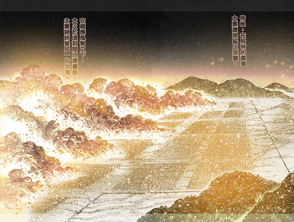 เมื่อโจโฉเห็นเเสงไฟถึงกับตะลึง (เอ....ผมสงเเฮะ เเล้วตอนนี้โจโฉอยู่ที่ไหน?)