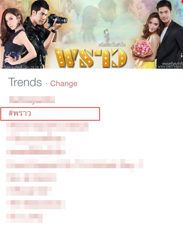 จน แฮรชแท็กซ์ที่ชื่อว่า #พราว ซึ่งเป็นแฮรชแท็กซ์ที่ใช้พูดคุยถึงละครเรื่องนี้ นั้นขึ้นอันดับ 2 เทรนด์การค้นหายอดฮิต ของ ประเทศไทย