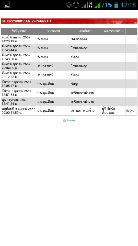 คืออยากรู้ค่ะว่าการที่เราส่ง ems ในเขต กทม มันใช้เวลาเตรียมการจ่าย 2-3 วันเลยหรอคะ และก็ของจาก ตจว ด้วยยย ตอนนี้เราอยู่ กทม นะคะ เราให้แม่กับน้าส่งของมาให้ อต่ก่อนก็ไวปกตินะ แต่เดี๋ยวนี้ทำไมมันช้าาจัง มีใครพอจะทราบกานจัดการในไปรษณีย์ไหมคะ ถ้าจะเตรียมการส่งนานแบบนี้ แล้วคนเค้าจะจ่ายค่า ems เพิ่มเพื่ออะไร จ่ายไปก้อได้ของแบบลงทะเบียน รูปตามนี้เลยนะคะสงสัยมากๆๆ แล้วจะโทรไปถามที่ทำการ ปณ ก็โทรไม่ติดเลย การบริการตอนนี้ไม่ดีเลย เห้ออออออ
