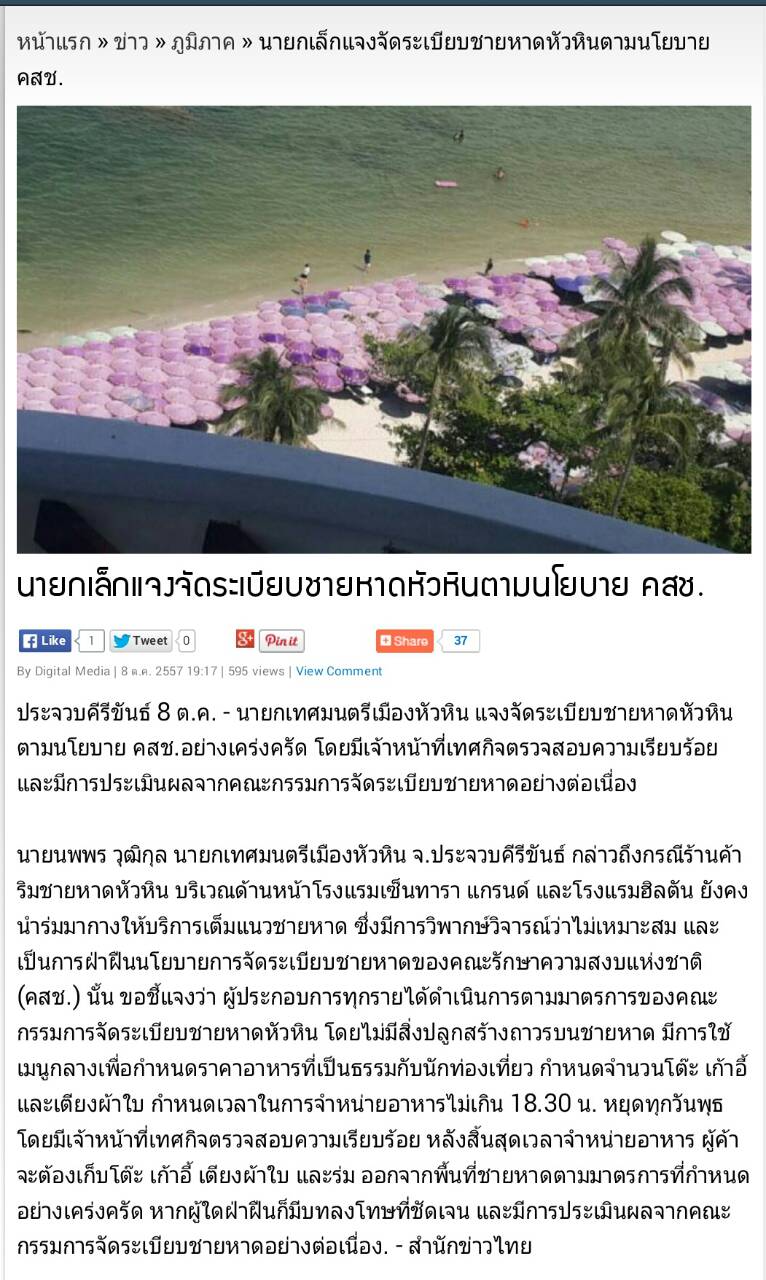 อุต๊ะ!!! เทศบาลหัวหินชี้แจงว่าร่มชายหาดถูกต้องแล้ว...เพื่อนๆเห็นว่าไงคะ? รับได้ไหม?
