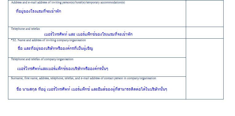 *ในข้อ 31 สำหรับคนที่เปลี่ยนที่พักหลายโรมแรม บางคนก็บอกว่าให้ใส่ชื่อและที่อยู่ของโรงแรมแรกที่เข้าพัก