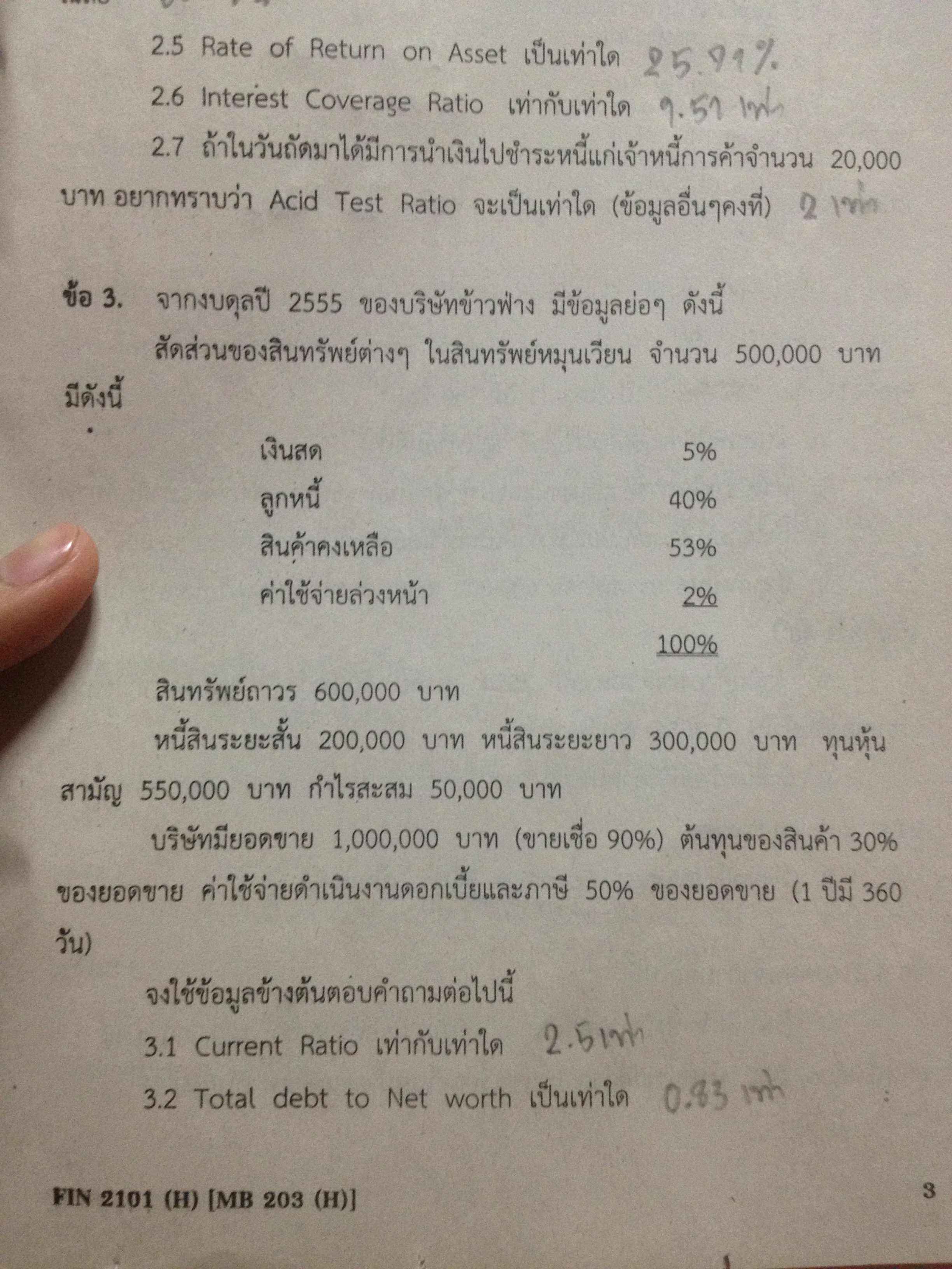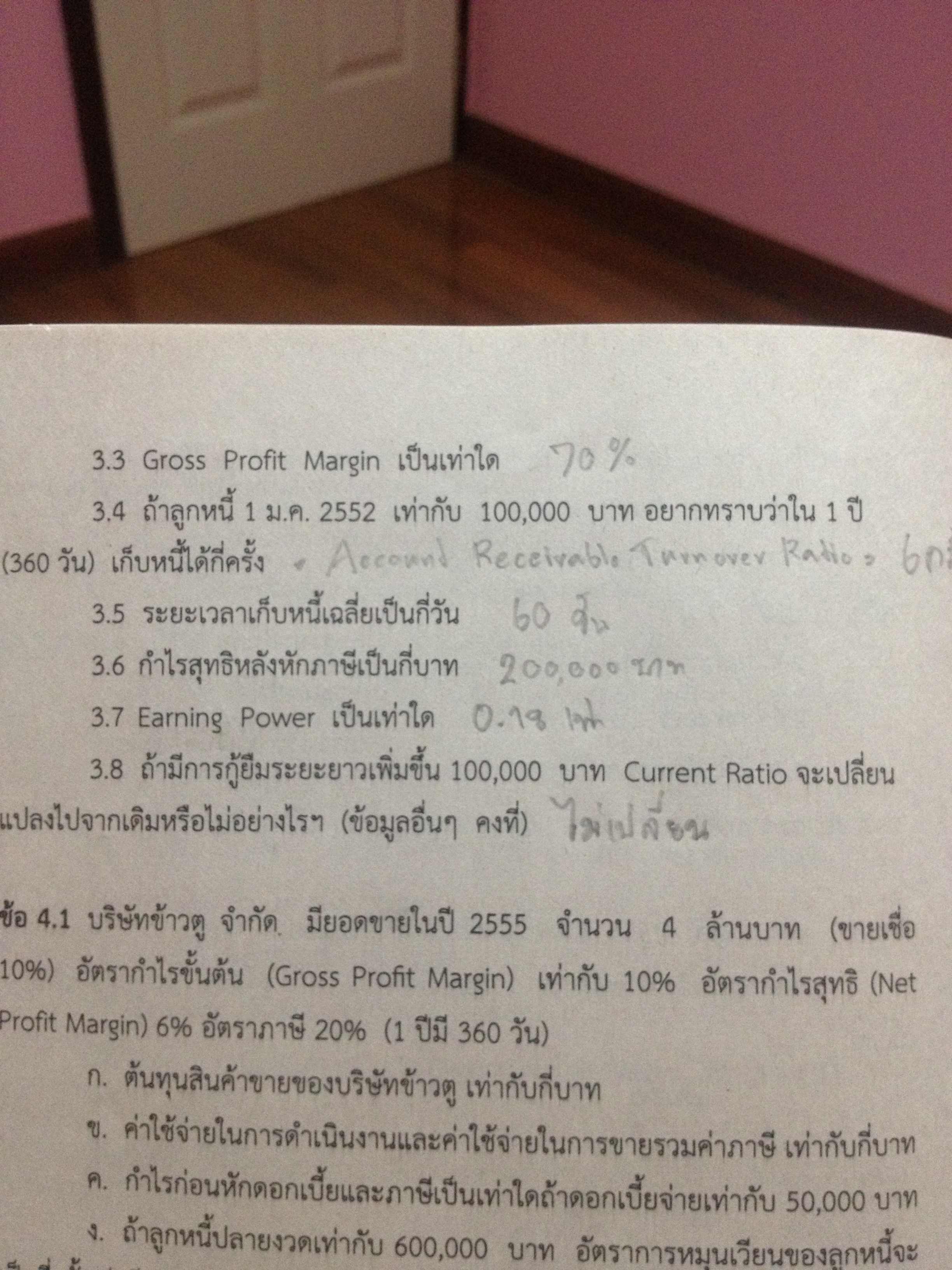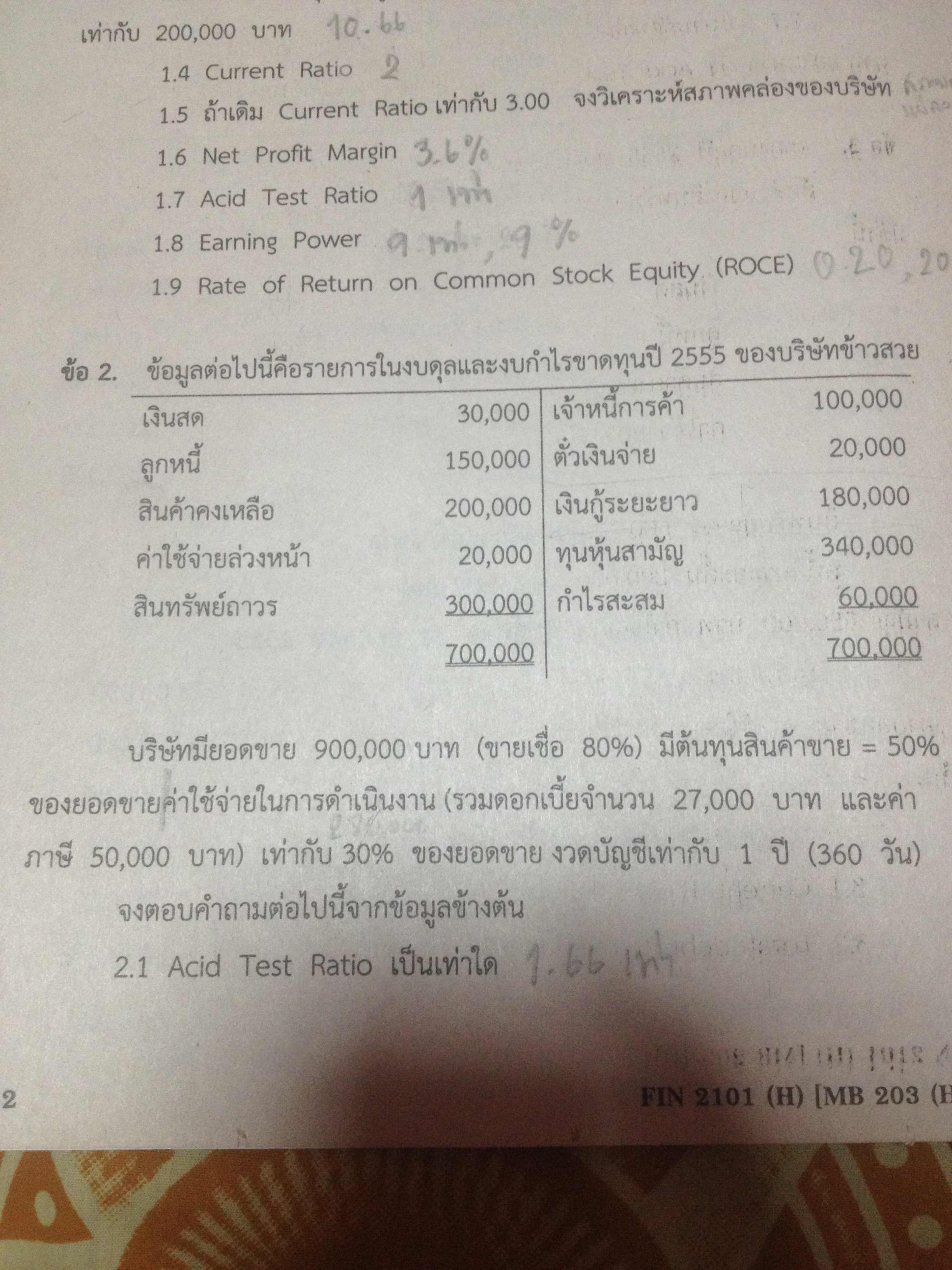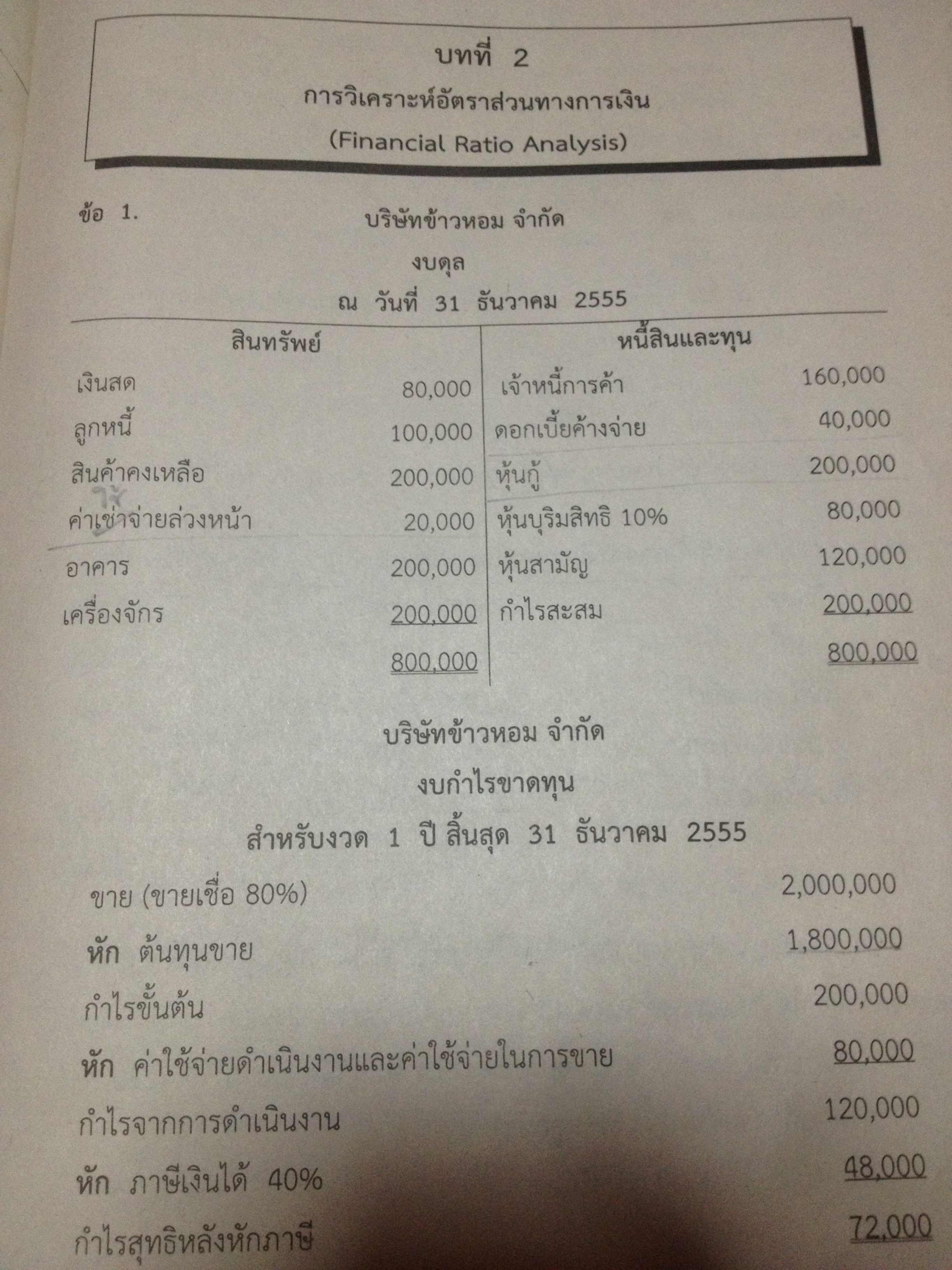 ใครเรียนการเงิน ทำงานเกี่ยวกับการเงิน คำนวณอัตราส่วนทางการเงินเป็น ตรวจการบ้านให้ทีครับ
