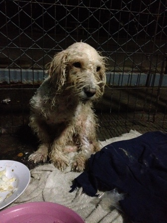 อาบน้ำให้ มันสั่นมาก เนื่องจากหนาว และหาเห็บให้