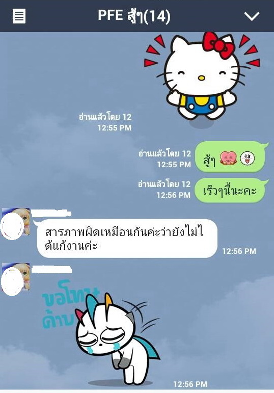 ดังนั้นพี่เค้าจึงต้องทวงงานกับน้องๆที่ยังไม่ได้ส่งโดยมีเทคนิกน่ารักมากค่ะ โดยการส่งข้อความเข้ามาในไลน์กลุ่มว่า