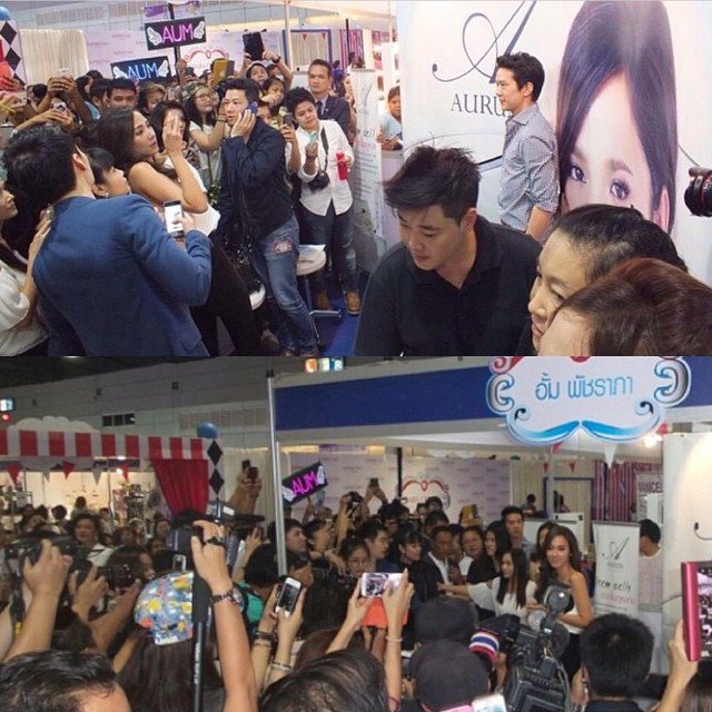[รายงานสด] "อั้ม พัชราภา" ควง "แอมป์ พิธาน" ออกบูธครีมกันแดด Aurum by Patchrapa @ Impact Arena เมืองทองธานี 11/10/2557
