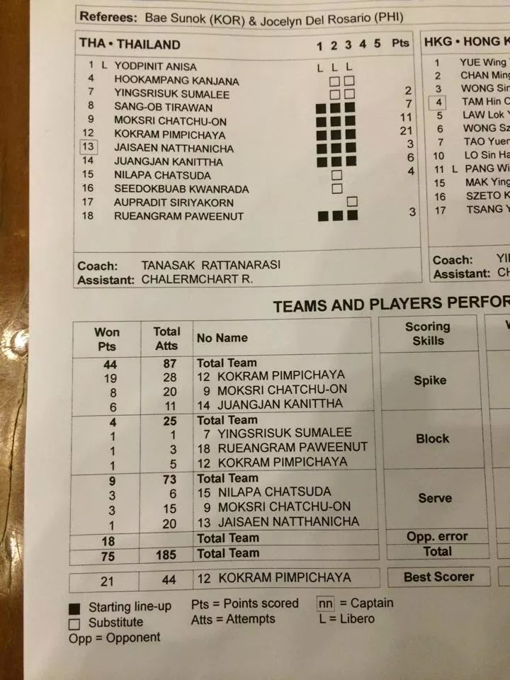 สถิติวอลเลย์บอลหญิง ชิงแชมป์เอเซีย u17 ฝั่งของไทย 11/10/2014