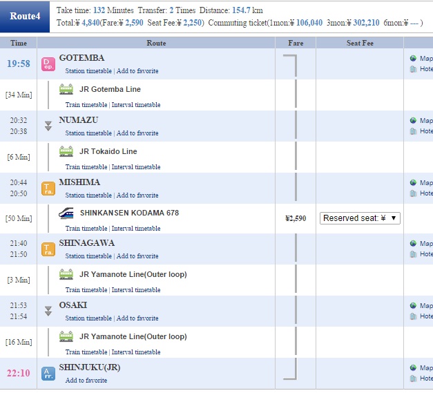 และใช้เส้นทางโดยหาจาก hyperdia.com