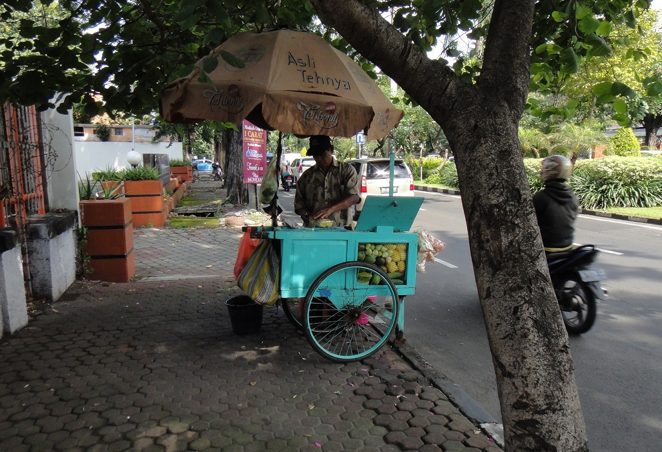 ตามทางที่เดินไปจะเห็นรถเข็นแบบนี้เป็นระยะ คล้ายรถขายผลไม้บ้านเรา