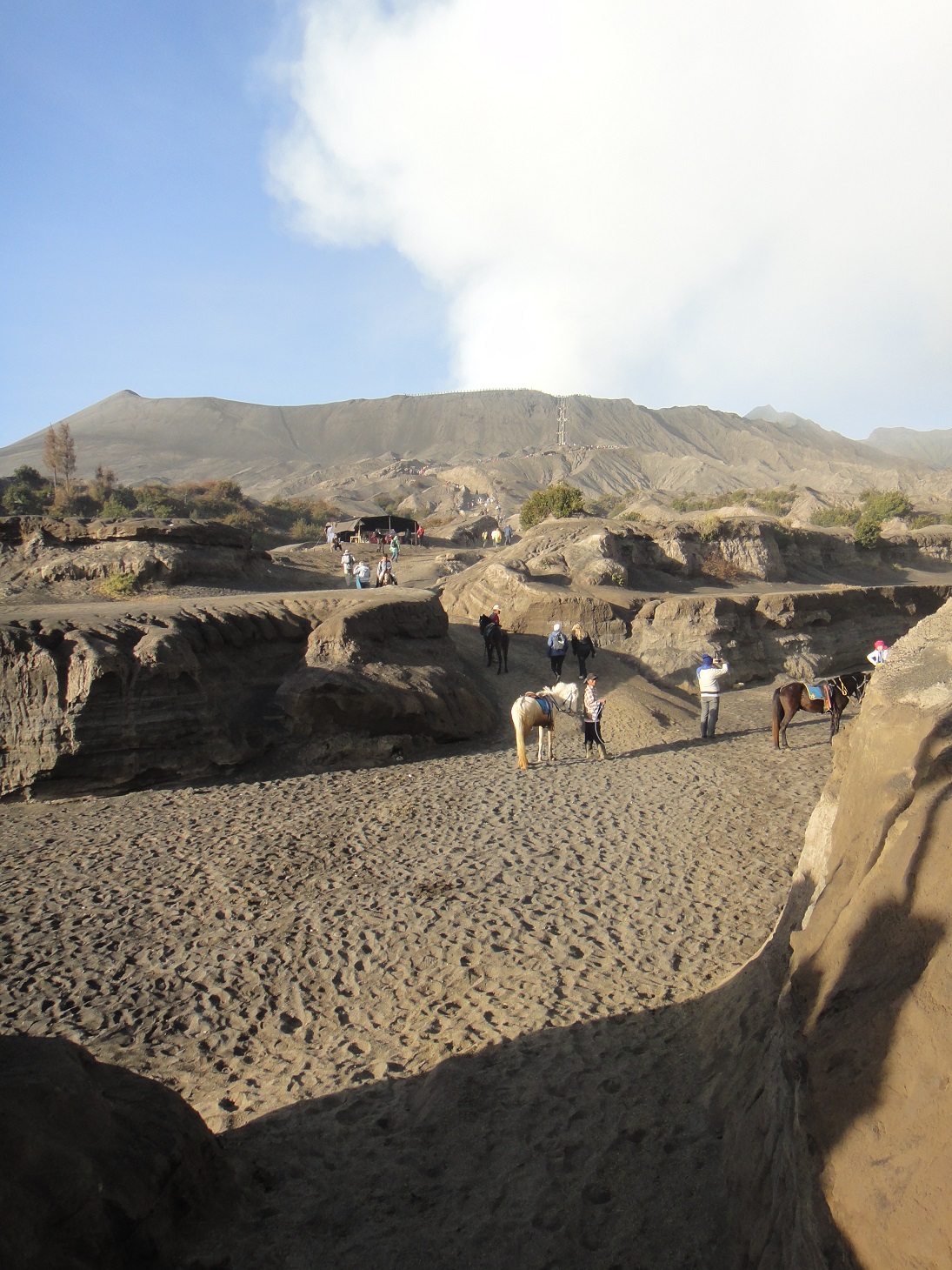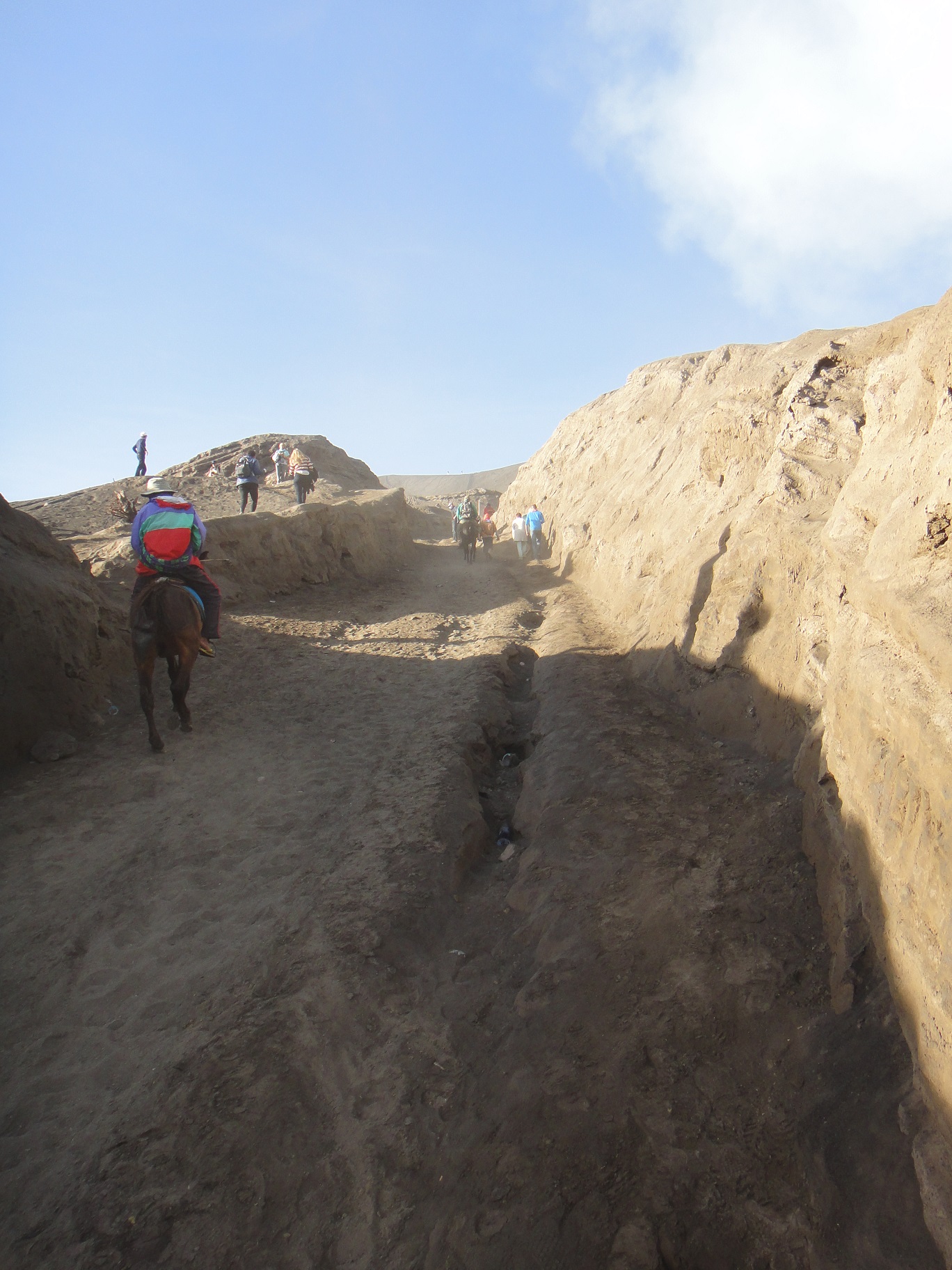 การขึ้นโบรโม่มีสองวิธีคือเดินดุ่ยๆ ลุยๆ ขึ้นไป กับขี่ม้าแล้วเดินต่ออีกหน่อย