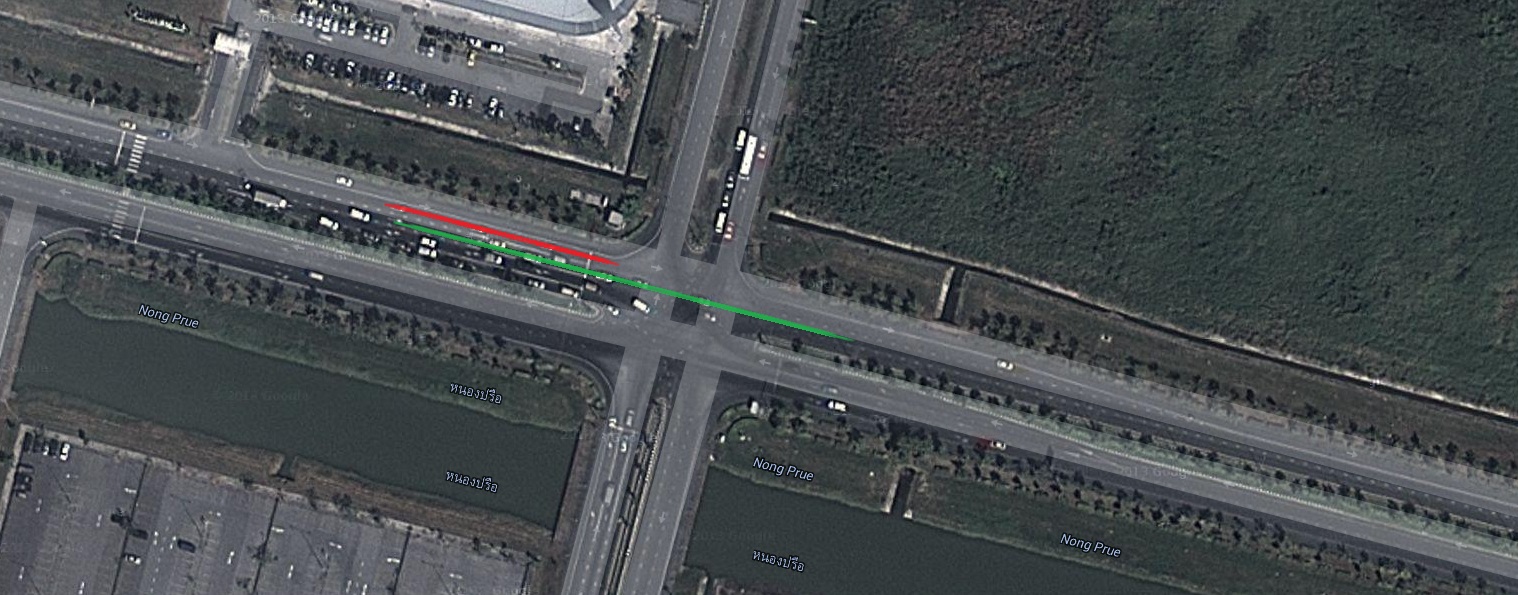 เส้นแดง คือเลนที่ต้องเลี้ยวซ้าย