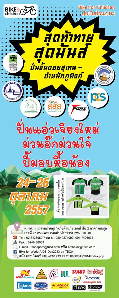 ขออนุญาติประชาสัมพันธ์งาน Bike for Children ปั่นปันน้อง 2014 กทม.-ดอยสุเทพ- พระตำหนักภูพิงค์ วันที่ 24-26 ต.ค.57