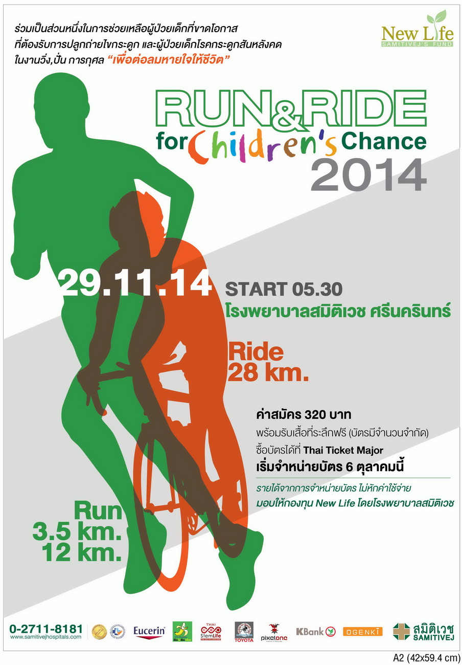 กิจกรรมวิ่งและปั่นจักรยานการกศุลต่อลมหายใจให้ชีวิต Run & Ride For Children’s Chance 2014 ณ ร.พ.สมิติเวชศรีนครินทร์