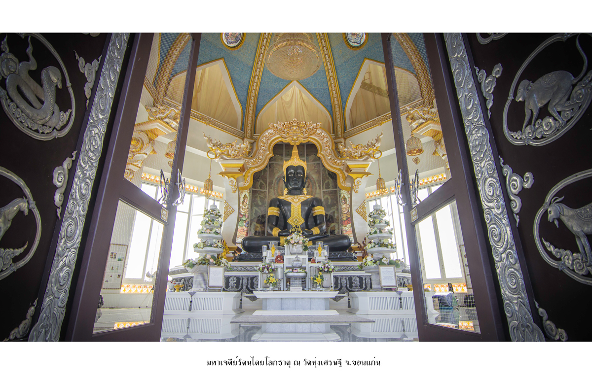 ที่วัดทุ่งเศรษฐี ถนนเลี่ยงเมือง บ้านผือ ตำบลพระลับ อำเภอเมือง จังหวัดขอนแก่น นักท่องเที่ยวจำนวนมากต่างเดินทางมาชมพระมหารัตนเจดีย์ศรีไตรโลกธาตุ ที่ตั้งอยู่กลางน้ำสวยงาม พร้อมสักการะพระพุทธนีลวรรโณศีโลท