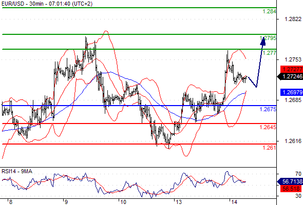Our preference: Long positions above 1.2675 with targets @ 1.277 & 1.2795 in extension.