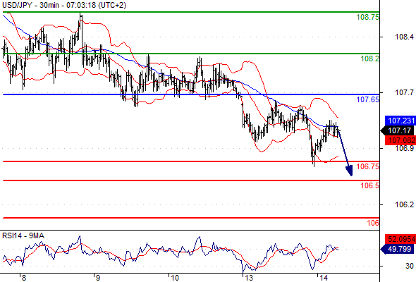 Our preference: Short positions below 107.65 with targets @ 106.75 & 106.5 in extension.