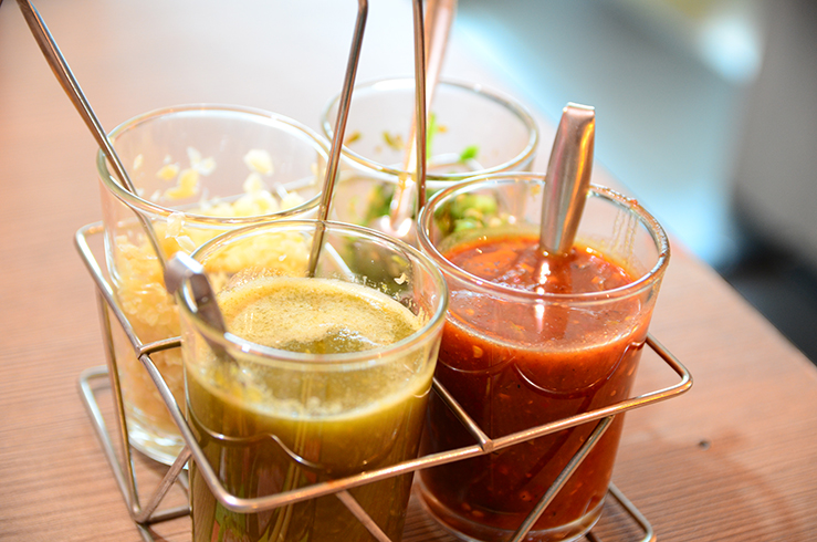เริ่มจากสั่งกุ้งมังกร เนื้อวากิว และกั้ง ระหว่างรอ กุ้งมังกรมา ก็เตรียม น้ำจิ้มไว้ก่อน น้ำจิ้มที่นี้ จะมีหลายชนิด ทั้ง ชีฟู้ด และ ปิ้งย่าง
