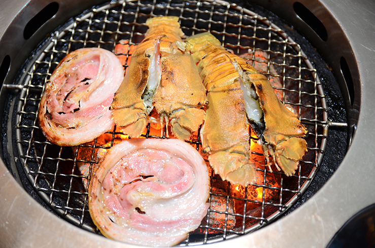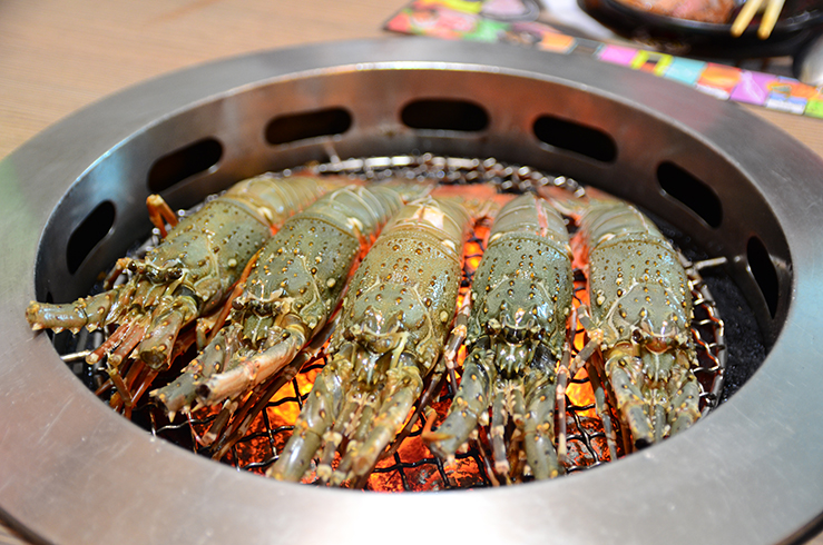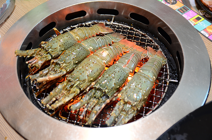 การย่างกุ้งมังกร นั้นใช้เวลาย่างค่อยข้างนาน อดใจรอกันสักครู่นะครับ และแล้ว กุ้งมังกร ก็สุกพร้อมกินได้แล้ว